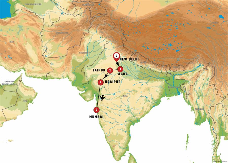 Delhi, Agra, Fathepur Sikri, Jaipur, Udaipur, bombay.