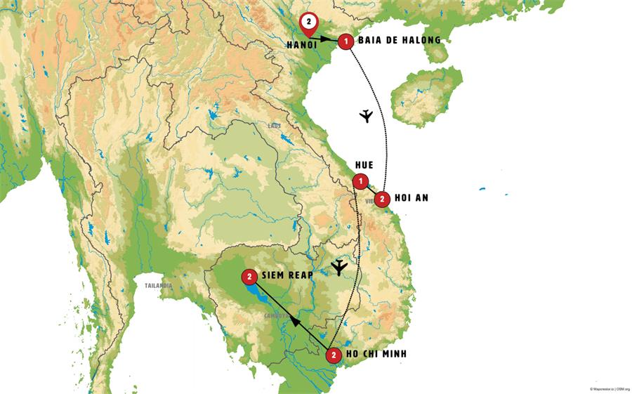 Hanói, bahia de ha long, Da Nang, Hoi An, Hue, Ho Chi Minh City, Siem Reap.