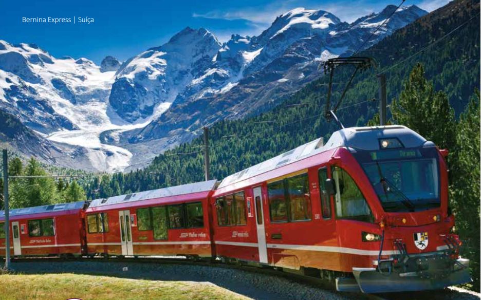 . Reserva de assentos em 2a classe nos trens panorâmicos Golden Pass (Interlaken Ost - Montreux), Glacier Express (Zermatt - St. Moritz), Bernina Express (St. Moritz - Tirano), Bernina Express Bus (Tirano - Lugano)
